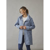 Long jacket in polyester/elastane mix. The jacket has a hidden hood inside collar and two spacious pockets with zipper.