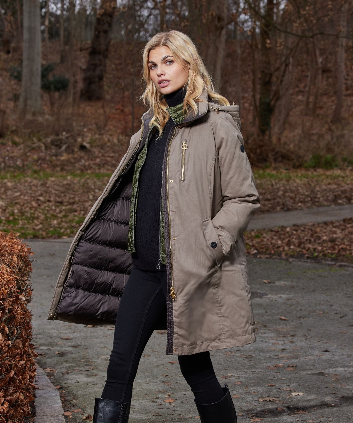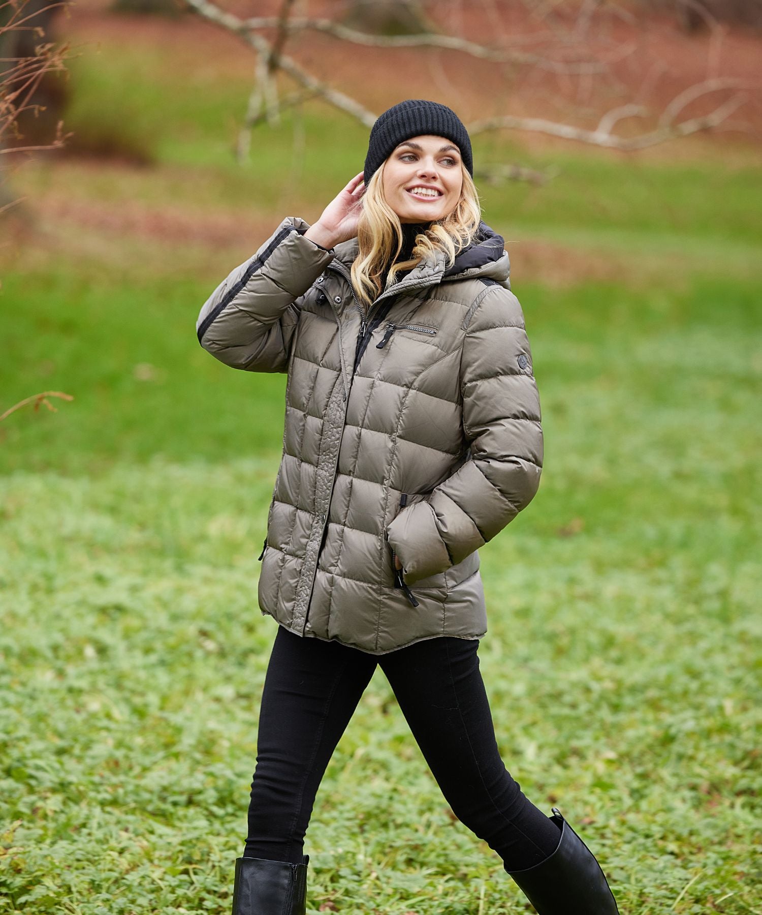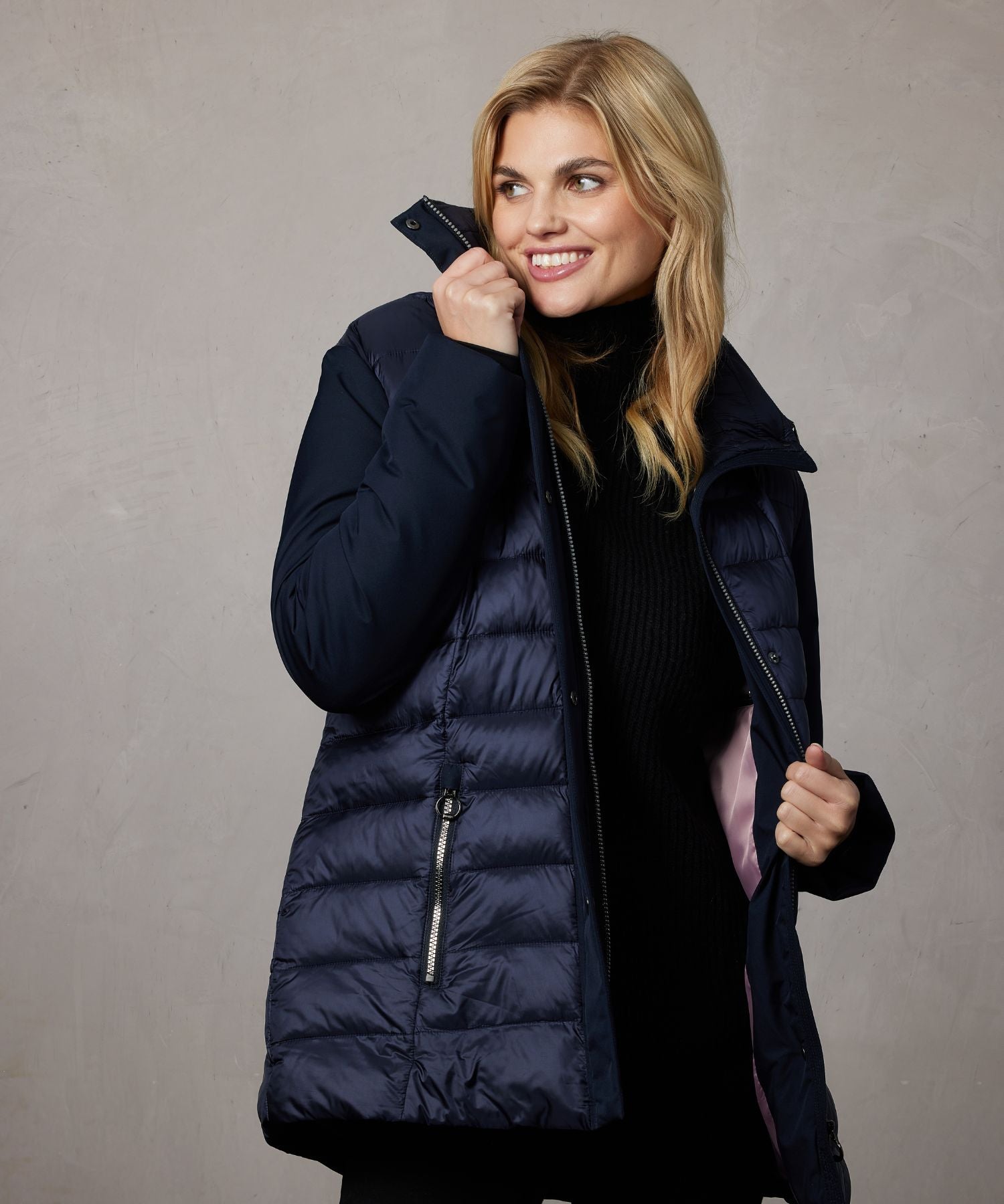 Margit er fylt med 90 % dun og 10 % fjær, og tilbyr overlegen isolasjon uten å føles klumpete, noe som gjør den til et luksuriøst, men lett yttertøyvalg.